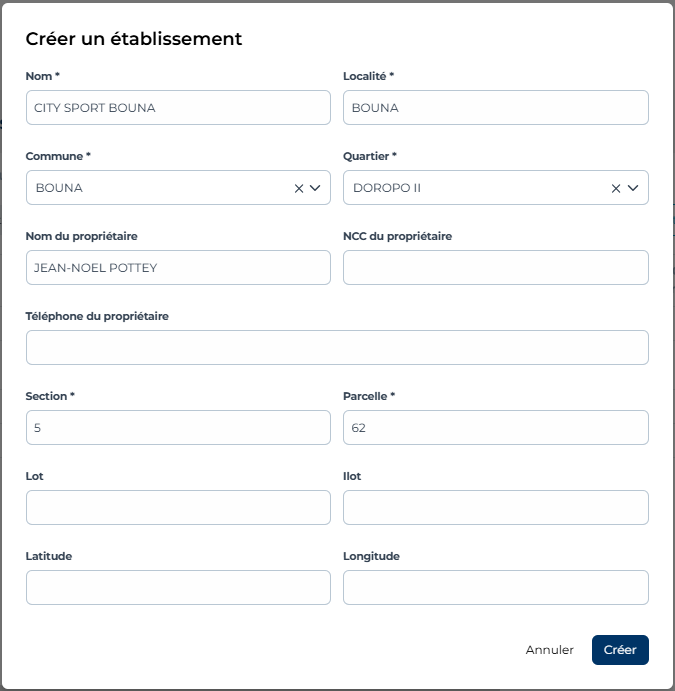1.1. Création de nouvel établissement