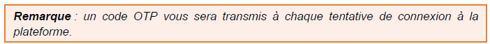 Etape 2 : Vous recevrez un code OTP dans votre boîte mail. Veuillez le saisir dans le champ indiqué et validez.